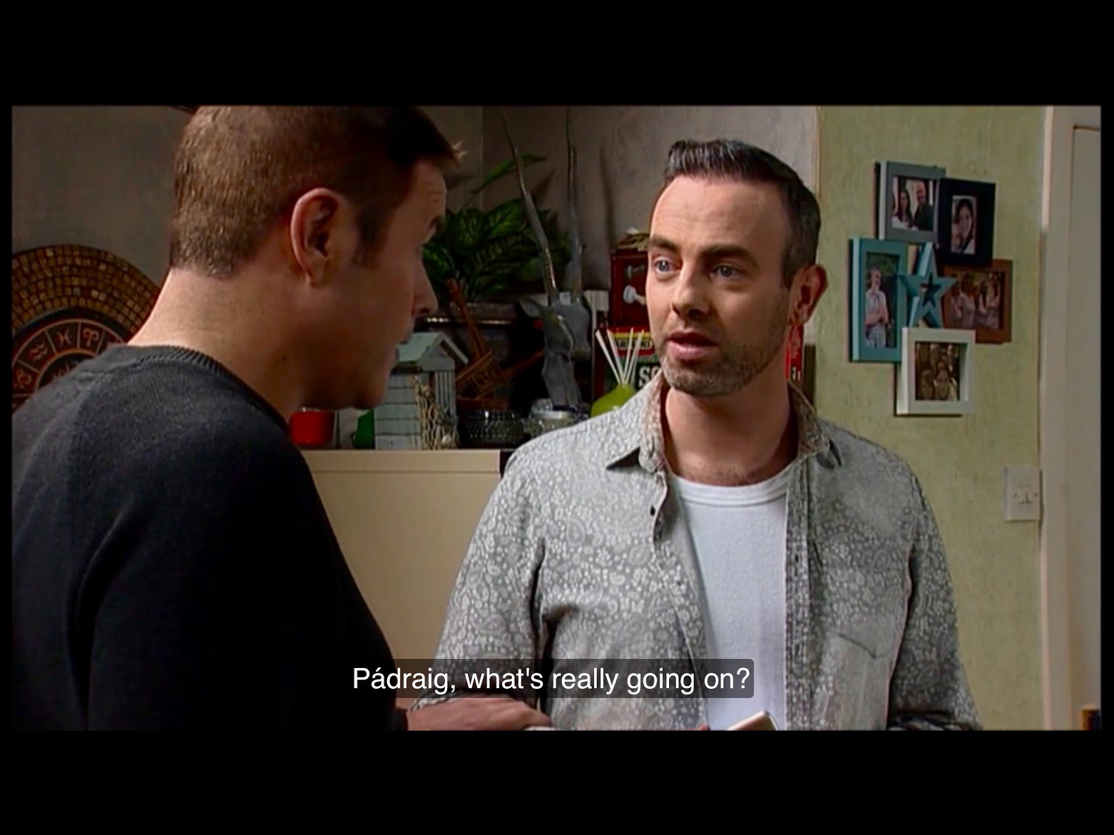 Over at Gaudi, David is moaning about the fact that they allowed Helen to believe that he’s still a social worker, which explains why he’s been wearing something other than his postman’s uniform today for the first time in two months. It’s hard to maintain the “social worker” charade when your jacket says “An Post” and you’ve got a bunch of boxes from Amazon under your arm. Pádraig basically tells him to shut up and stop being such a goody two-shoes, and besides, if they find they’re unable to take care of Sam, they can always sneak him into Annette’s house and convince her he’s one of her four to six children and has always been there.
