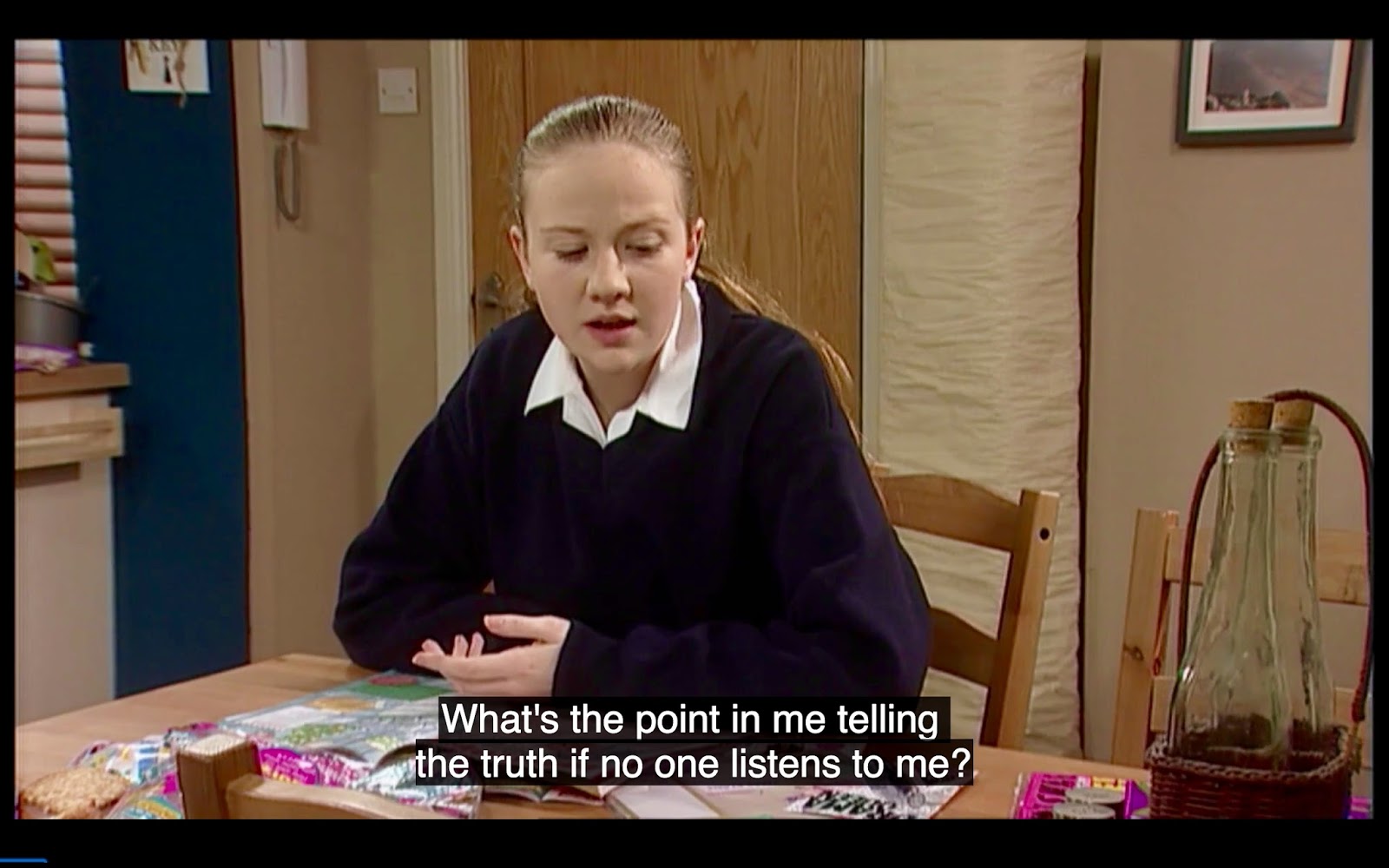 the truth because nobody ever believes her anyway. Laoise helpfully replies