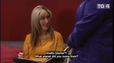 Back at Chez Head Injury, Adam is on the phone telling Mo what’s happened, and just as we get annoyed with him for having called 1800-MO instead of 999, he tells her he’s already called an ambulance. So we probably owe him an apology, although the fact that his immediate reaction to finding Peatsaí unconscious on the floor was to kick him for 14 minutes instead of checking to see if he was OK maybe cancels that out. Anyway, he pleads with Peatsaí not to die and so on, and my hope is that all this is an elaborate hoax by Peatsaí to fake his own death for the insurance money.